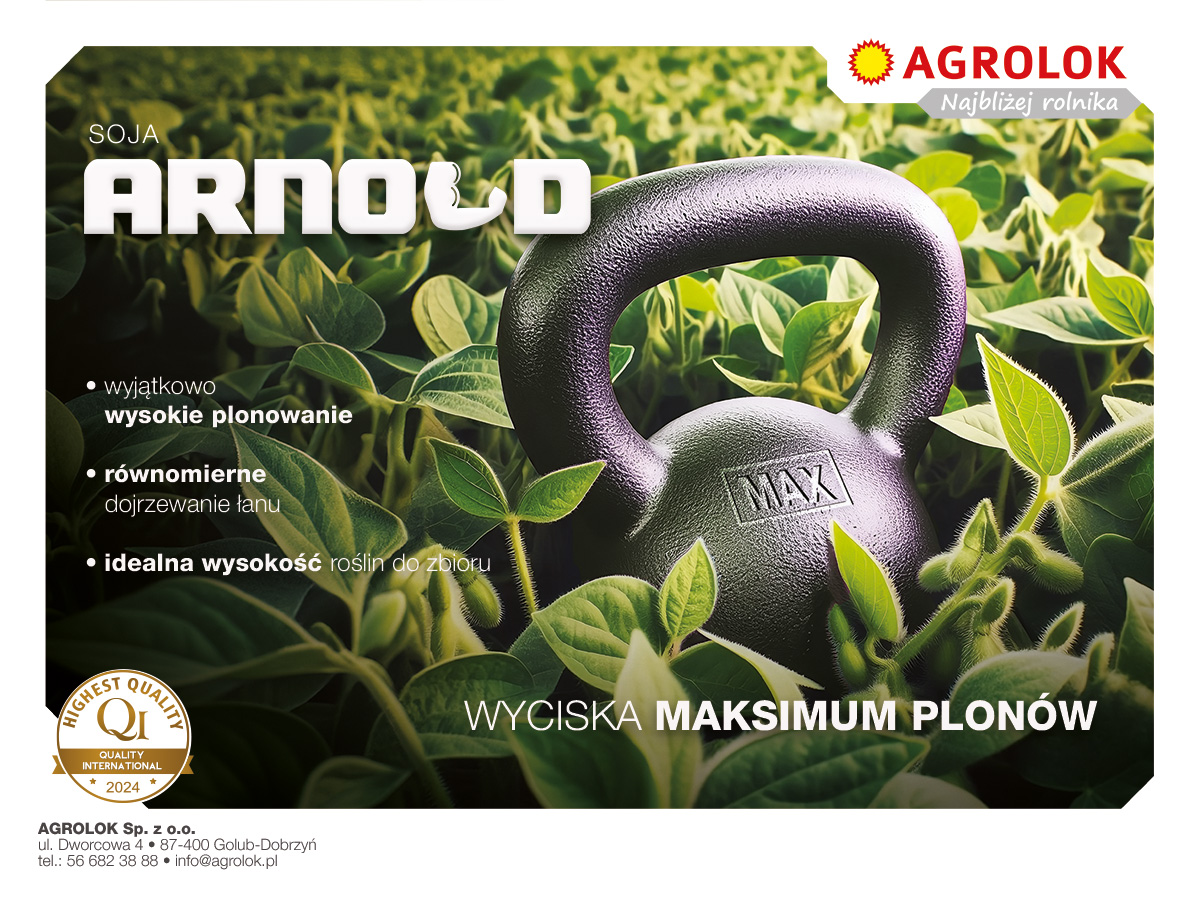 Odmiana soi Arnold to nowość na rynku wyróżniająca się wybitnym potencjałem plonowania. Dzięki tolerancji na niekorzystne warunki pogodowo-klimatyczne, Arnold sprawdza się nawet w trudniejszych sezonach. W badaniach COBORU (2022-2023) odmiana osiągnęła drugi najwyższy wynik plonowania, potwierdzając swoją niezawodność w polu. Arnold charakteryzuje się wyjątkową strukturą rośliny, która ułatwia zbiór, co przekłada się na efektywność pracy rolników. Rośliny tej odmiany dojrzewają równomiernie, minimalizując ryzyko strat, a odporność na pękanie strąków zapewnia stabilność plonu do samego końca.